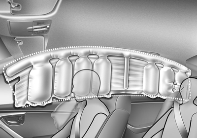 Les airbags rideau sont situés le long des deux rails de toit latéraux au-dessus des portières avant et arrière.
