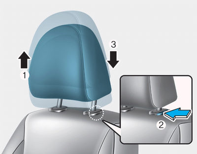 Pour lever l'appui-tête, tirez-le jusqu'à la position souhaitée (1). Pour baisser l'appui-tête, appuyez et maintenez enfoncé le bouton (2) situé à la base de l'appui-tête, puis baissez l'appui-tête jusqu'à la position souhaitée (3).