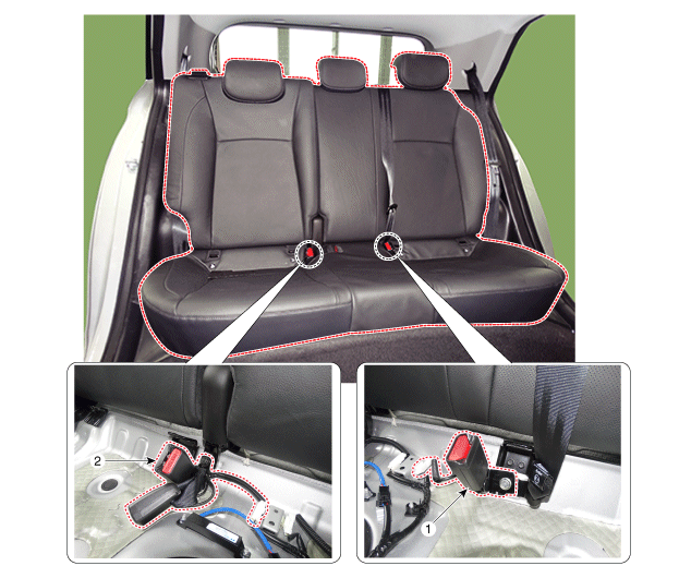 Boucle de ceinture de sécurité arrière Procédures de réparationCouvercle latéral du coussin anti-collision Procédures de réparation