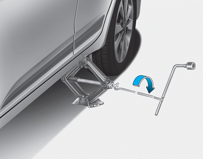 11. Descendez le véhicule au sol en tournant la clé d'écrous de roues dans le sens inverse des aiguilles d'une montre.