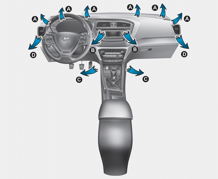 4. Réglez la commande d'arrivée d'air en position d'air extérieur (frais) ou en