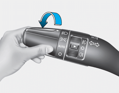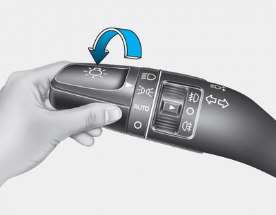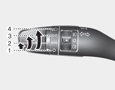 Pour activer les feux, tournez le bouton situé à l'extrémité du levier de commande sur l'une des positions suivantes: