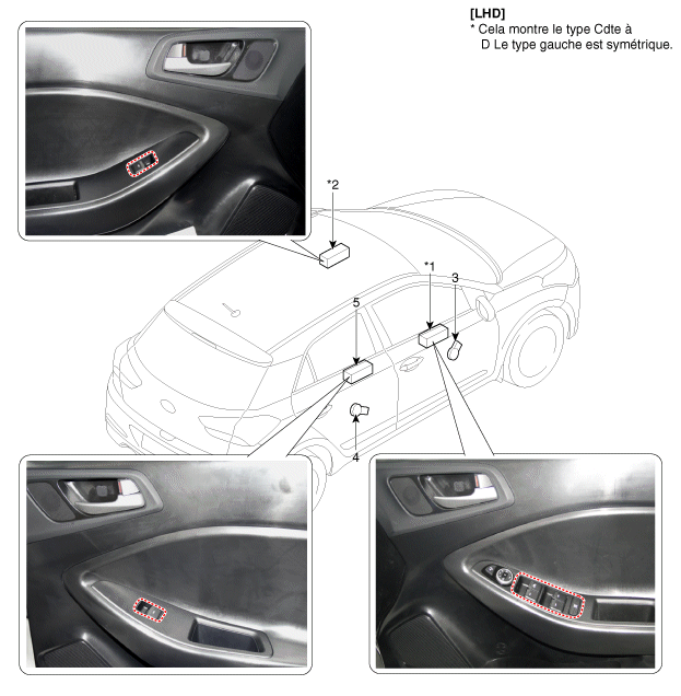 4. Moteur de la vitre arrière 5. Interrupteur de la vitre arrière |