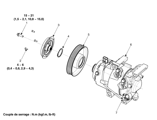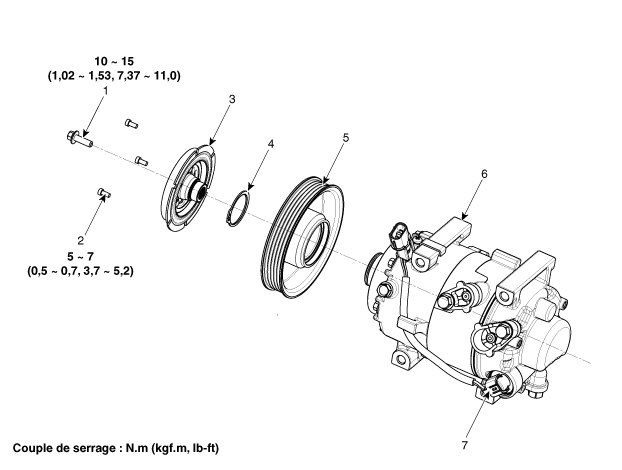 5. Poulie 6. Compresseur 7. Soupape de commande électrique (ECV) |