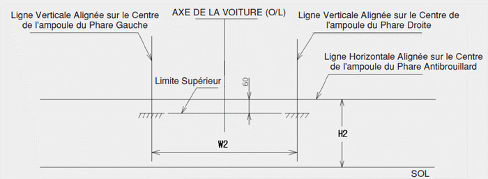 1. Allumez les feux antibrouillard avec le conducteur à bord (75 kg).