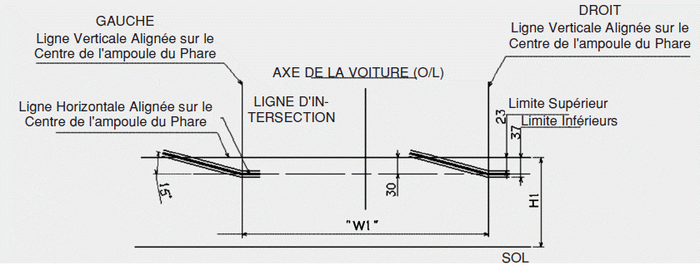 3. Lorsque vous orientez les feux de croisement, réglez l'orientation verticale après avoir réglé l'orientation horizontale.