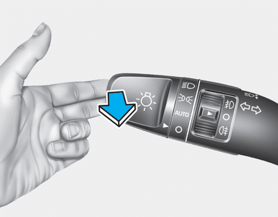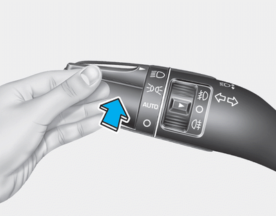 Pour allumer les feux de route, poussez le levier. Le levier retournera en position d'origine. Le voyant des feux de route s'allume lorsque les feux de route sont en position ON. Pour allumer les feux de route, tirez le levier vers vous. Les feux de croisement s'allument.