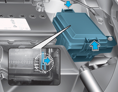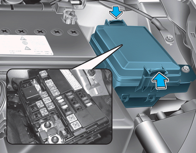 Après avoir contrôlé le boîtier de fusibles du compartiment moteur, fixez à nouveau solidement son couvercle. Si vous ne le faites pas, les infiltrations d'eau peuvent provoquer des pannes électriques.