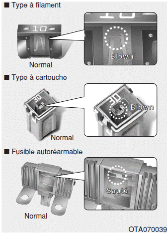 Lorsqu'un fusible a sauté, l'élément situé à l'intérieur est fondu.