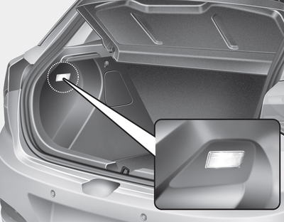 La lampe du coffre s'allume tant que le hayon est ouvert. Pour éviter que la charge du système lumineux se vide inutilement, fermer le coffre en toute sécurité après avoir utilisé l'espace pour bagages.
