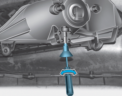 Orientez les feux antibrouillard avant. L'état des feux antibrouillard avant et de la batterie doit être normal. Pour orienter le feu antibrouillard avant vers le haut ou le bas, tournez l'actionneur (1) dans le sens des aiguilles d'une montre ou dans le sens inverse.