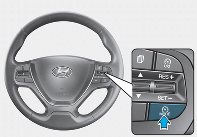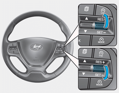 3. Poussez sur le levier vers le haut (RES+) ou vers le bas (SET-), et relâchez-le à la vitesse souhaitée. Poussez le levier vers le haut (RES+) ou vers le bas (SET-) maintenez-le dans cette position. La vitesse augmentera ou diminuera de 5km/h.