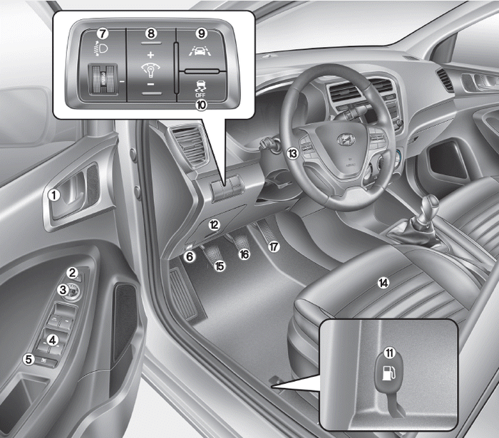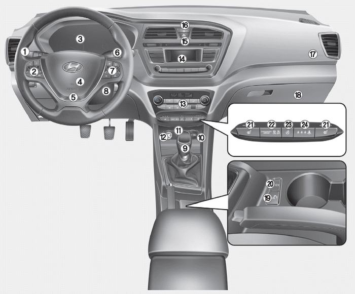 8. Bouton de démarrage/arrêt du moteur/ Clé de contact