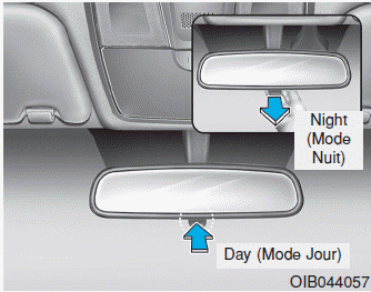Toutefois, notez que la luminosité dans le rétroviseur diminue en position nuit.