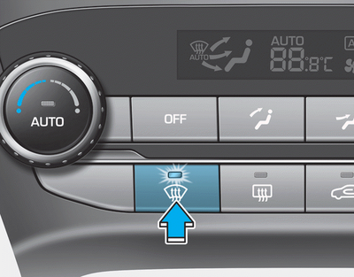 La majorité du flux d'air sort au niveau du pare-brise, avec une petite partie de l'air dirigée vers le dégivrage des fenêtres latérales. (A/C et mode d'air frais automatique)