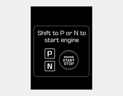 • Ce message d'avertissement s'affiche si vous tentez de démarrer le moteur alors que le levier de vitesse n'est pas en position P (parking) ou N (Point mort).