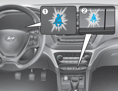 Si la ceinture du conducteur est détachée lorsque le contact est mis ou si la ceinture est détachée après avoir mis le contact, le témoin de la ceinture de sécurité correspondant reste allumé jusqu'à ce que la ceinture soit attachée.