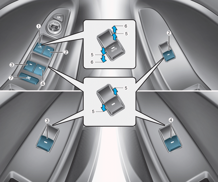 (4) Commutateur de la vitre électrique du passager arrière (droite)*