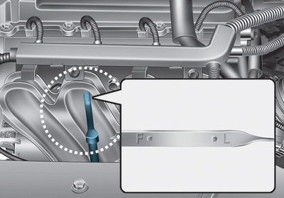 5. Retirer à nouveau la jauge et vérifier le niveau. Le niveau doit se trouver entre les repères F et L.