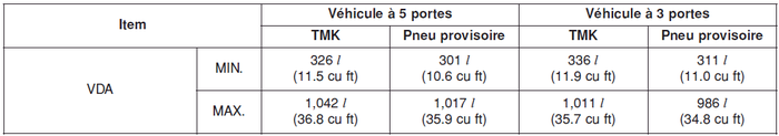 Min: De derrière le siège arrière jusqu'au bord supérieur du dossier.