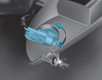 2. Retirez la douille de l'ensemble en tournant la douille dans le sens inverse des aiguilles d'une montre jusqu'à ce que les ergots de la douille soient alignés sur les logements de l'ensemble. (Gauche : Voyant des feux antibrouillard arrière, Droite : Feu de recul)