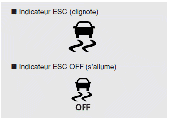 Si le témoin ESC reste allumée, il est possible que vous ayez un dysfonctionnement avec l’ESC système. Si ce voyant d'avertissement s'allume, nous vous conseillons de faire vérifier le véhicule par un concessionnaire HYUNDAI agréé dès que possible.